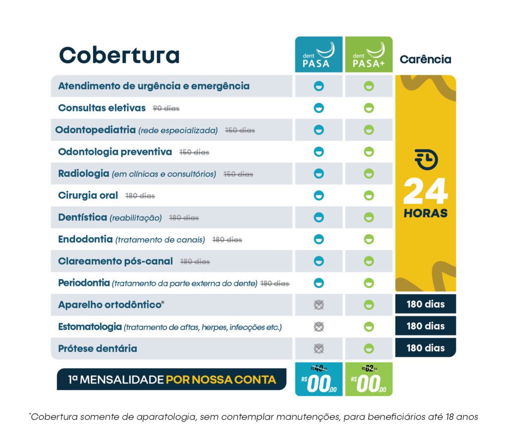 A partir de hoje, os planos DentPASA e DentPASA Plus estão com uma condição especial que permite acesso imediato aos cuidados odontológicos, com qualidade e economia.